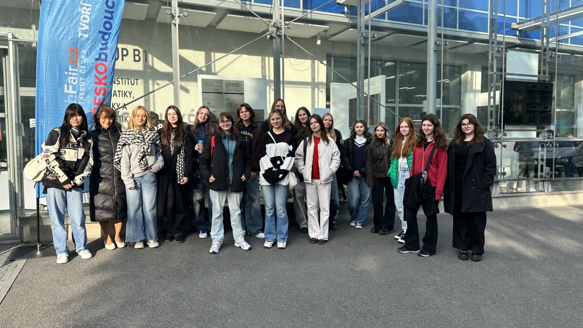 Dne 30. září 2025 jsme se s děvčaty naší školy vydaly na veletrh TechFair 2025, který se konal v prostorách CIIRC ČVUT v Praze. Smyslem této akce je inspirovat mladé lidi k tomu, aby se nebáli vstoupit do světa vědy a techniky. Zajímavou součástí programu byla Tech Girls zóna, kde měly dívky možnost vyslechnout si přednášky inspirativních žen působících v technických oborech. Kromě toho mohly navštívit ukázky robotiky, virtuální reality i obdivovat model formule sestavený studenty. Naše studentky ocenily nejen autentické příběhy přednášejících, ale také příležitost lépe se mezi sebou poznat a propojit. Věříme, že atmosféra veletrhu pro ně byla skvělou motivací do budoucna."