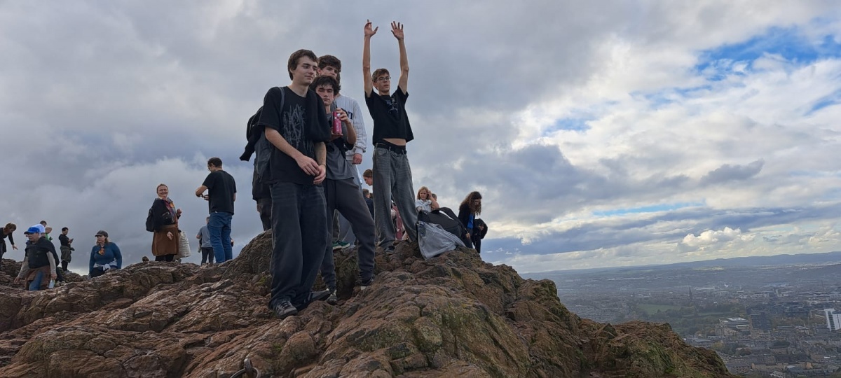 Od 19. do 23. října vyrazili žáci především druhých ročníků na poznávací zájezd do Skotska. Pod vedením průvodce Michala měli žáci první den možnost projít si historické centrum Edinburghu a také se v Holyrood Distillery dozvědět jak se vyrábí proslulá skotská whiskey. Další den jsme vyrazili na Edinburghský hrad, někdejší královské sídlo současně stále využícané Skotskými ozbrojenými silami. Po krátkém odpočinku jsme zakusili trochu kardia ale i krásných výhledů při výšlapu na nejvyšší bod Edinburghu, kopec Arthur's Seat, vyhaslou sopku nacházející se přímo v centru města. V úterý jsme zamířili k možná nejznámější skotské atrakci, jezeru Loch Ness, nacházející se několik hodin severně od Glasgow, kde jsme si na vyhlídkové plavbě poslechli výklad jak o původu slavné legendy o Nessie, tak o významu jezera pro současný biologický výzkum. Cesta k jezeru vedla nádhernou Tolkienovskou skotskou vysočinou a okolo hory Ben Nevis, nejvyšší hory Skotska. Ve středu ráno jsme si prošli úžasně zachovalý hrad Stirling a vyšplhali 246 schodů až na vrchol památníku Williama Wallace. Odpoledne jsme pak strávili v přímořském univerzitním městě St. Andrews, kde měli žáci možnost sami prozkoumat co je zajímalo. Ve čtvrtek ráno jsme výlet završili prohlídkou Glasgowské katedrály a přilehlé Necropolis a potom už nás čekala jen cesta na letiště a zdárný návrat do Prahy.